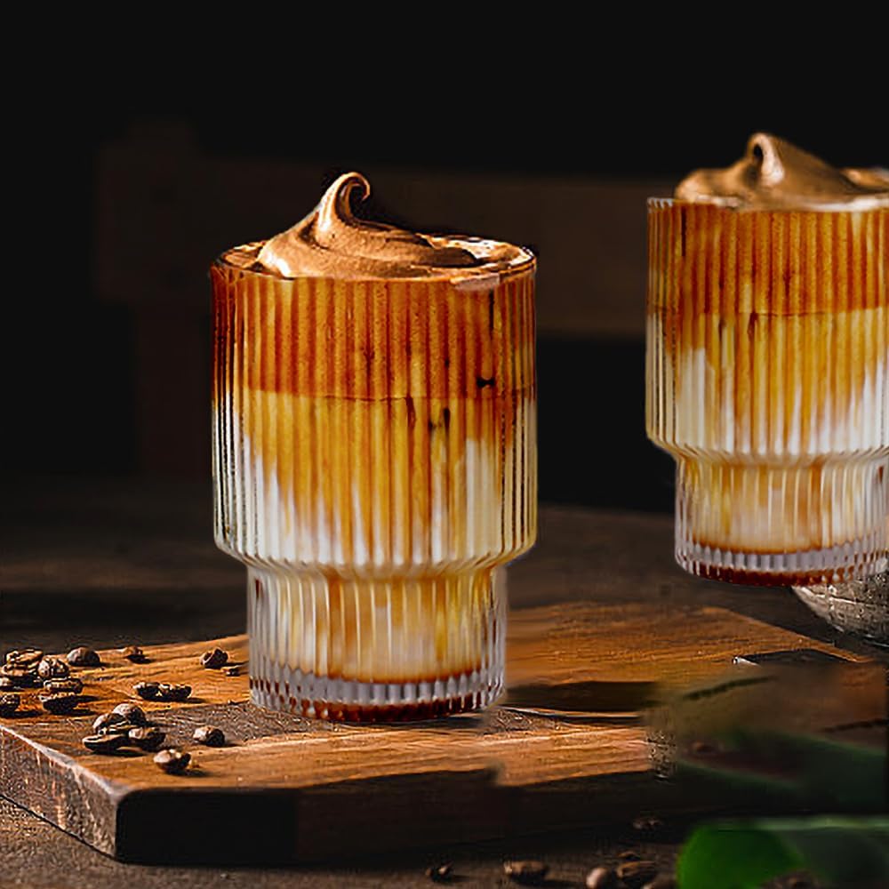 - Vintage Ribbed Design - Retro classic and elegant style to decor your home. This ribbed glassware set includes 2 pcs 11oz rocks glasses, special and vintage. The ergonomically-designed that you will feel lightweight in hand and comfortable to hold.