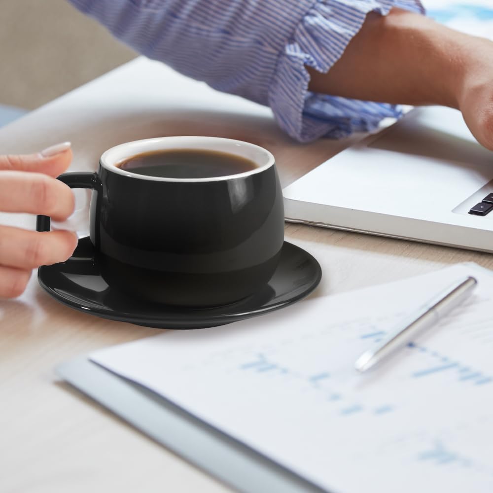 - Premium Porcelain Construction: Made from high-quality, durable porcelain, this 270ml (9oz) coffee cup and saucer set is designed to withstand daily use while maintaining its sleek, modern appearance. Chip-resistant and heat-resistant for long-lasting performance.