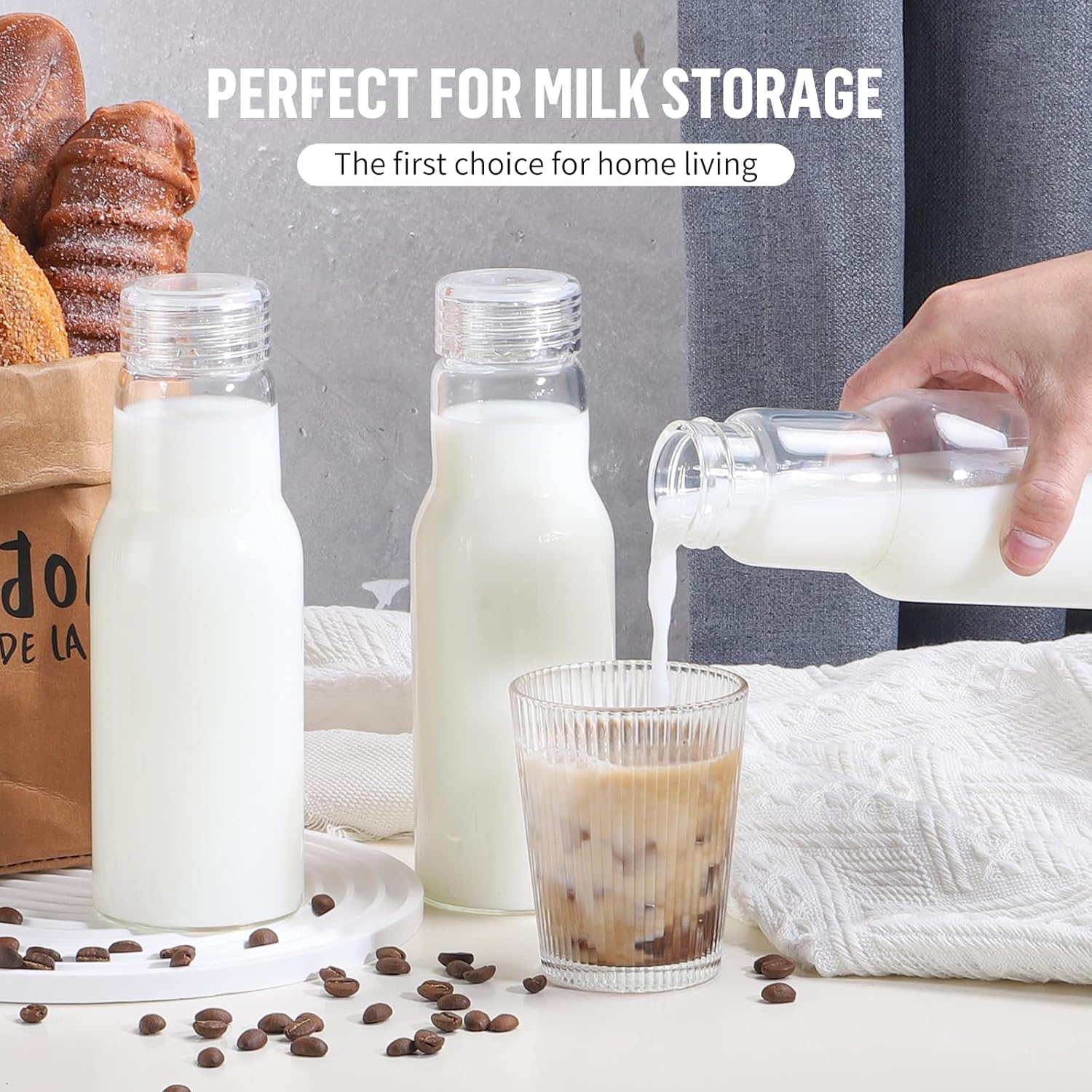 - 【Excellent Quality and Versatility】 The glass bottles can be used for storing and dispensing milk and other beverages, but also can also be used as fruit wine bottles or for storing food, and the food-grade glass allows you to be confident in their versatility