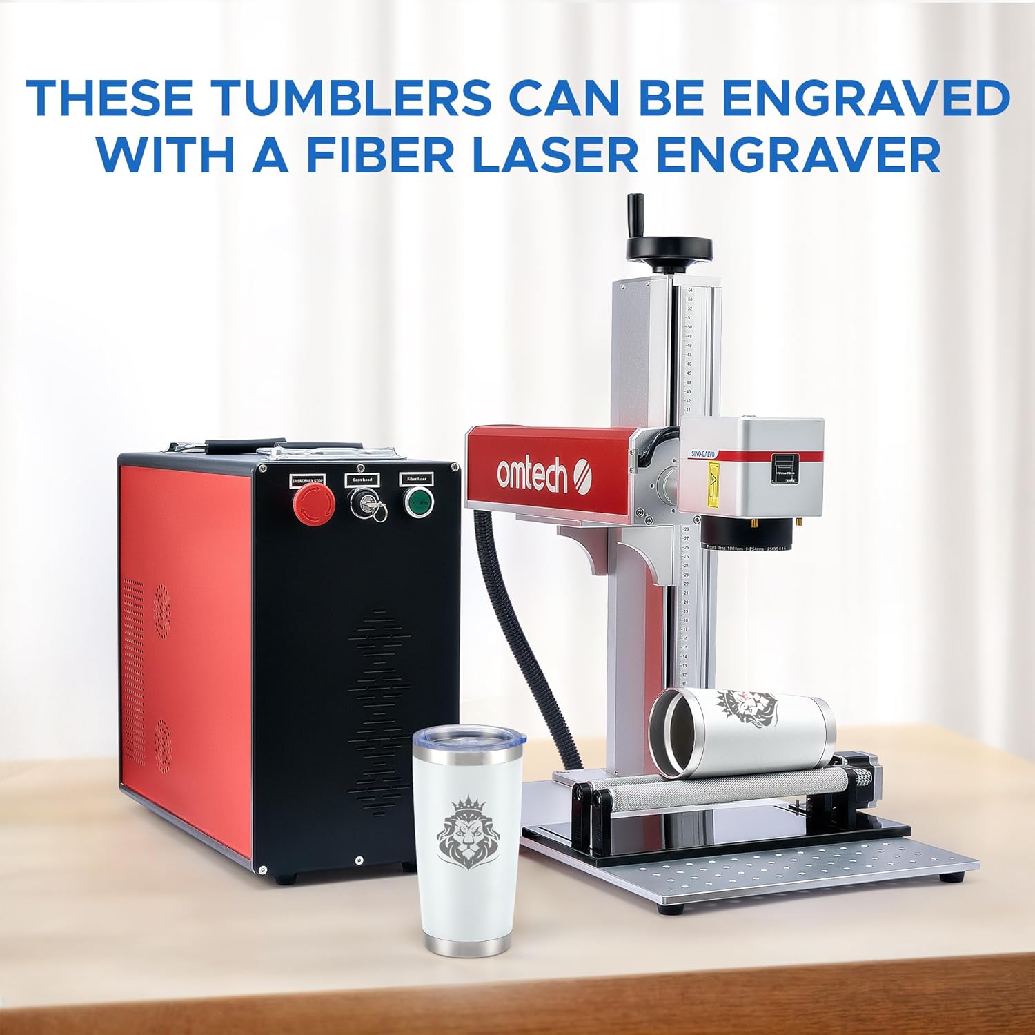 OMTech 20oz Tumblers Bulk, 12pc Stainless Steel Tumbler Set with Lid & Straw, Double Wall Vacuum Insulated Mug for Laser Engraver, Travel Coffee Mug for Hot & Cold Drinks, White Powder Coated Cup