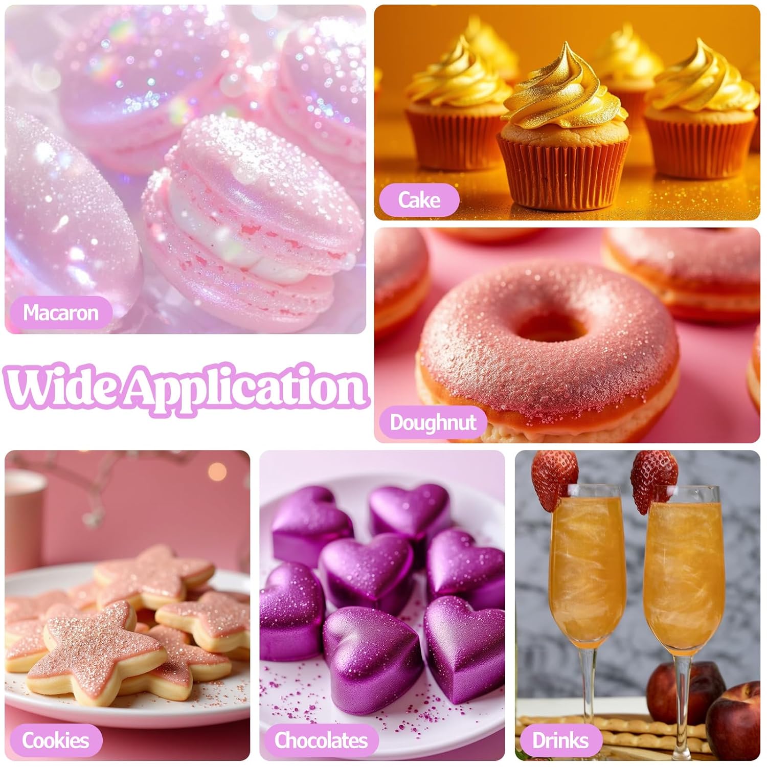 - Safe & Non-Toxic -100% edible food-grade glitter powder in 0.28 oz/8 g. Our edible glitter is made from food-grade ingredients that is vegan-friendly, gluten-free, dairy-free, non-GMO, it will not alter the original taste or texture of beverages and foods. so everyone can use and enjoy this product regardless of diet or food allergies