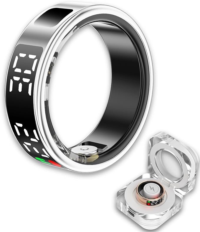 Smart Ring Health Tracker, Wearable Sleep Heart Rate Step Blood Oxygen Tracker, IP68 Waterproof Smart Ring with LED Screen to Track All Your Important Health Indicators