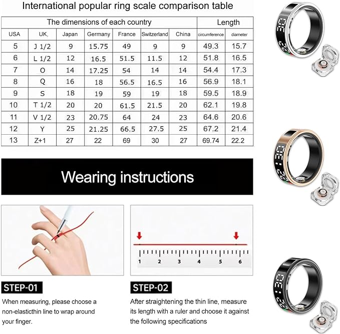 - 【Convenient to Use】The smart ring is equipped with a charging case and can last up to 7 days. Ring design is lighter and comfortable compared to traditional smart watches, so that you will not feel uncomfortable even if you wear it for a long time. Whether it is birthday, Valentine's Day, Mother's Day, Father's Day, Thanksgiving, or Christmas, smart rings are a practical and meaningful gift.