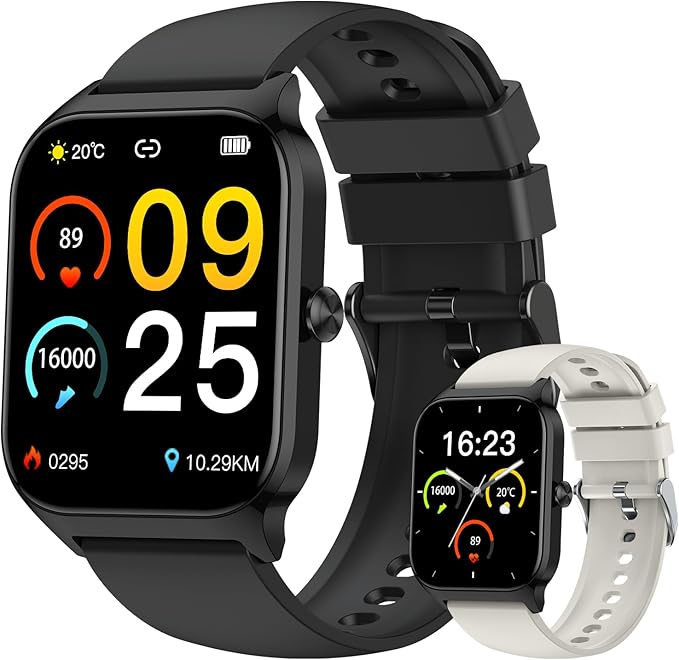 - 2 Watch Straps, 2Wearing Styles: Digital watch women men adopts a larger screen design, and come with 2 watch silicone bands suitable for any daily occasion.(Receive/Dial) and message notifications can be displayed directly on screen.Smart watch for android phones contains many dials readily available to choose from along.You can DIY watch faces with your own photos.Smart watch for iphone compatible can be any photo,such as your family,pet,et