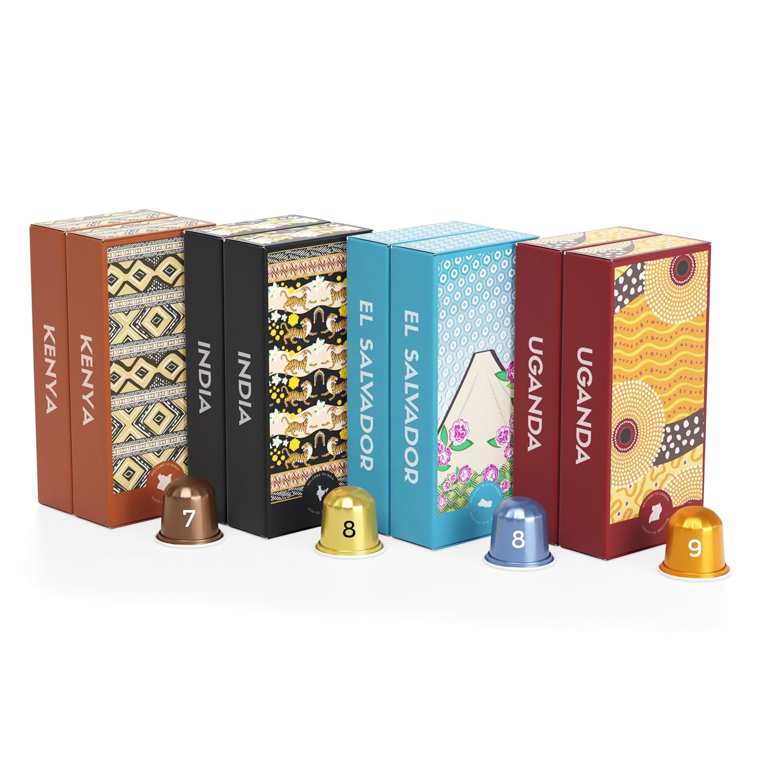 Atlas Coffee Club Espresso Pods Compatible with Nespresso Original– Medium Roast Variety Pack (80 Count)– Aluminum Capsules from Kenya, El Salvador, India & Uganda– Intensity 7–9