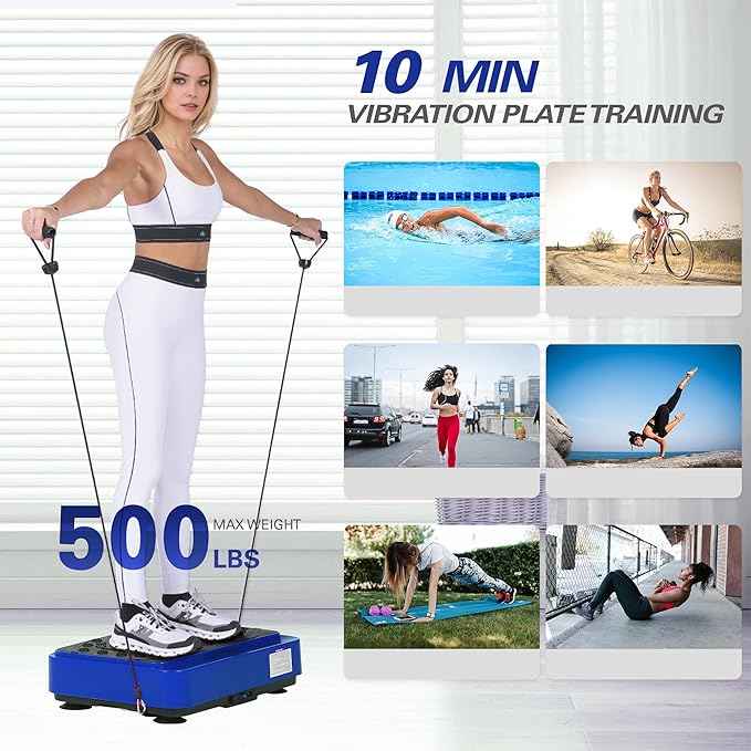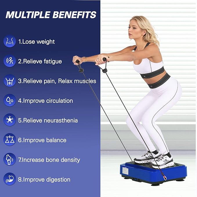 - 【Create Your Dream Body Shape】SOGES vibration plate exercise machine provides you with a new way of exercise that can effectively engage in full body exercises,burn calories,and achieve weight loss effects.Effective vibration exercises can relax muscles,promote blood circulation,and shape your ideal body shape.Whole body vibrations can stimulate and exercise muscles.It can help your body process fat many times faster than running, making your fitness journey easier and more effective