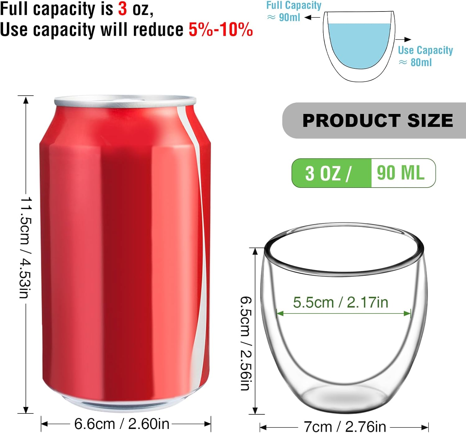 Espresso Cups Set of 2, 3 OZ Expresso Shots Glass Cup, Double Walled Glass Coffee Mugs, Espresso Machine Accessories,Insulated Clear Espresso Shot Glasses Cups,Water Won't Enter Between Double Walls