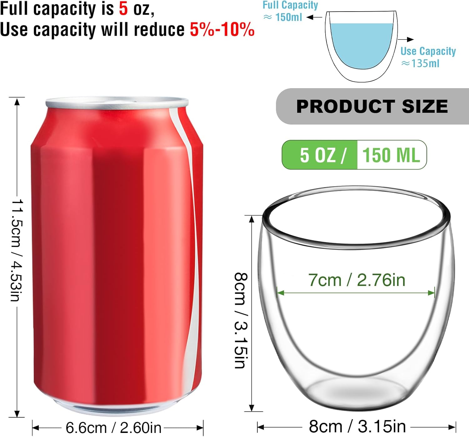 - Material Glass : Capacity 5 Fluid Ounces