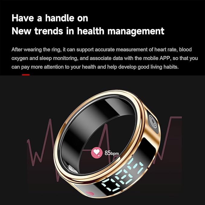 Smart Ring, Fitness Tracker Ring, Cordless Sports Health Tracker with APP, Charging Case, Support BT, IP68 Activity Tracker for Men Women Birthday Gift (#11)