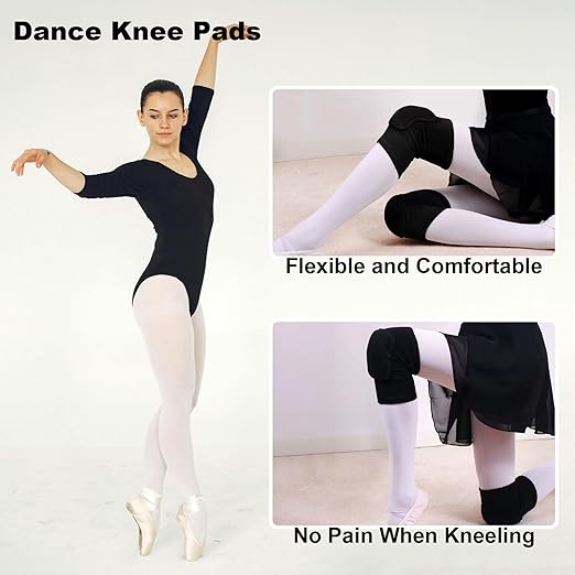 - BREATHABLE COMPRESSION FABRIC: The dance knee pads are made of comfortable and durable knitted fabric, which is skin-friendly, soft and comfortable to wear. It has good breathability and moisture-absorbing and sweat-wicking functions to prevent odors. Knee pad also have a certain degree of elasticity and compression, providing strong support for the knees, promoting blood circulation, keeping muscles warm, accelerating the healing process, and preventing further knee swelling, muscle and ligament tears or inflammation