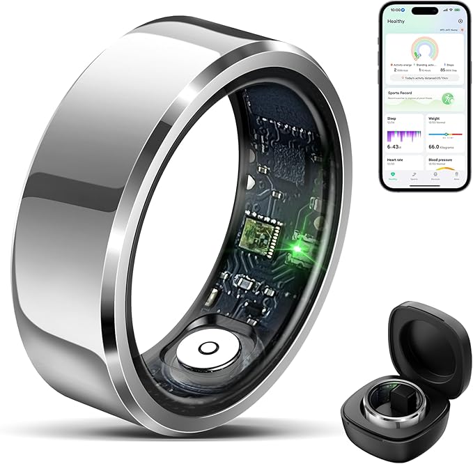 - 24/7 Comprehensive Health Monitoring with Our Health Ring: Monitor your health metrics with the built-in sensors, including heart rate, blood oxygen, blood pressure, sleep patterns with deep sleep, light sleep & wake-up time, and stress in real-time with our all-in-one smart ring. It features a dedicated women’s health section for personalized insights, empowering you to stay on top of your well-being each day. This smart ring health tracker helps you live a healthier, more active life.
