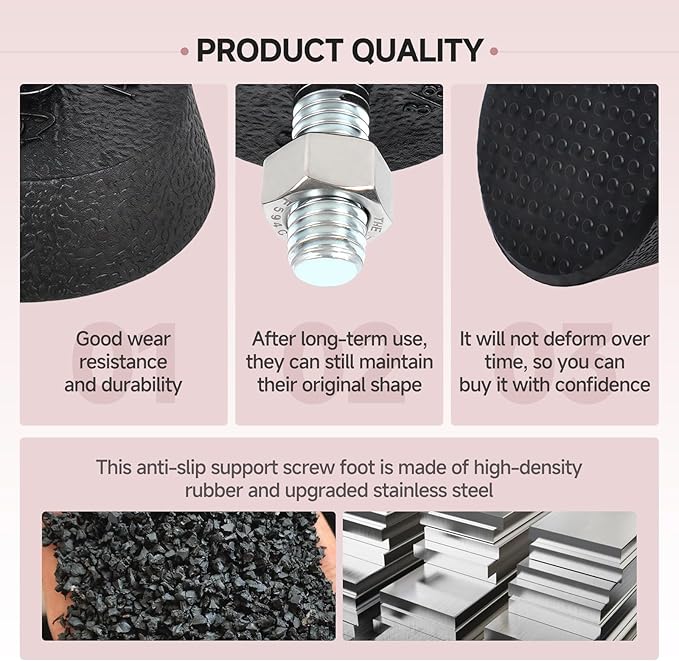 - High Quality: These anti-slip leveling feet are made from high-density rubber and upgraded stainless steel materials, offering good wear resistance and durability. Even after long-term use, they retain their original shape and do not deform over time, giving you peace of mind with your purchase