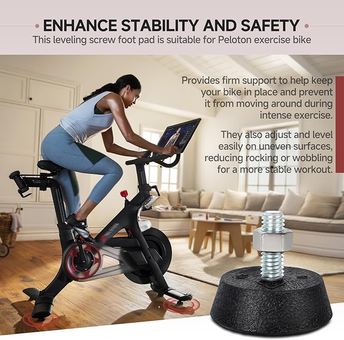 - Enhance Stability and Safety: These 3/8 inch leveling feet are designed for Peloton exercise bikes, providing solid support to help keep your bike securely in place, preventing it from moving during intense workouts. They can also be easily adjusted and leveled on uneven floors, reducing wobbling or shaking, offering a more stable workout experience