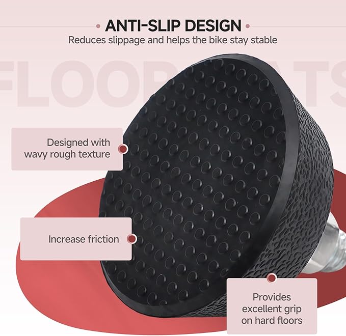 - Anti-Slip Design: The bike leveling feet feature a wave-shaped textured design that enhances friction and provides excellent grip on hard floors. Even during vigorous exercise, it reduces slipping and helps keep the bike stable