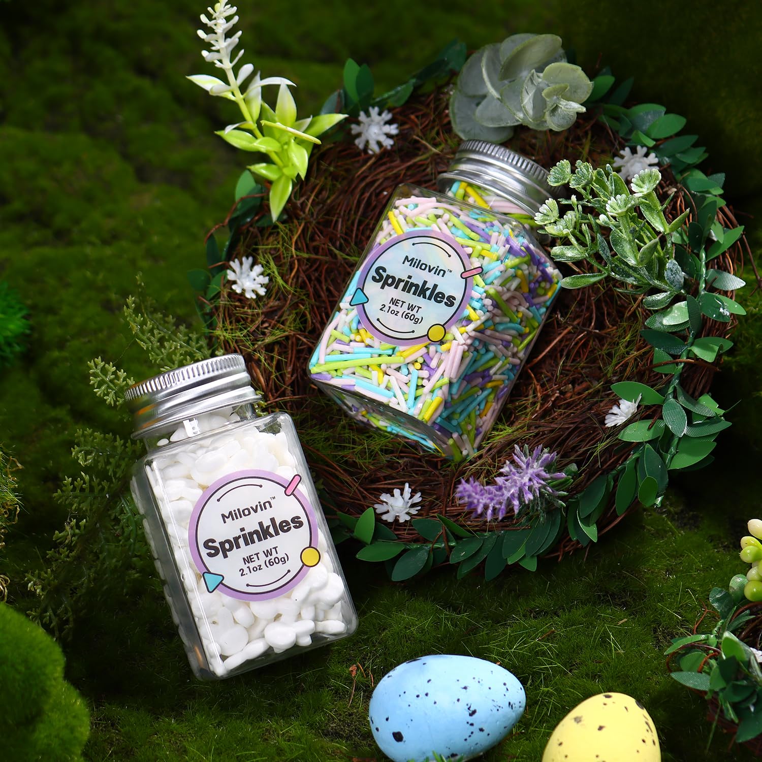 - Edible Spring Sprinkles for Cookies: Pastel jimmies sprinkle and white bunny cake decoration, suitable for cakes, cupcakes, ice cream, cookies, macarons, donuts, and more. It's best for decorating after your items have already been baked, avoid melting during baking