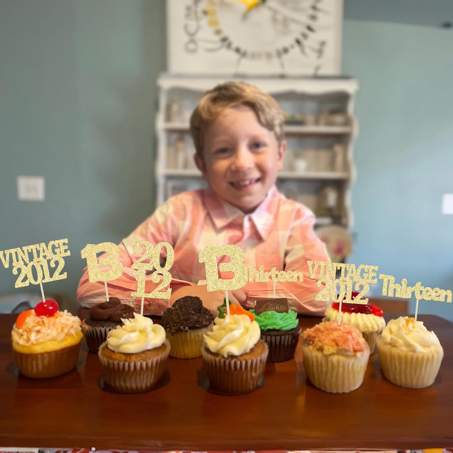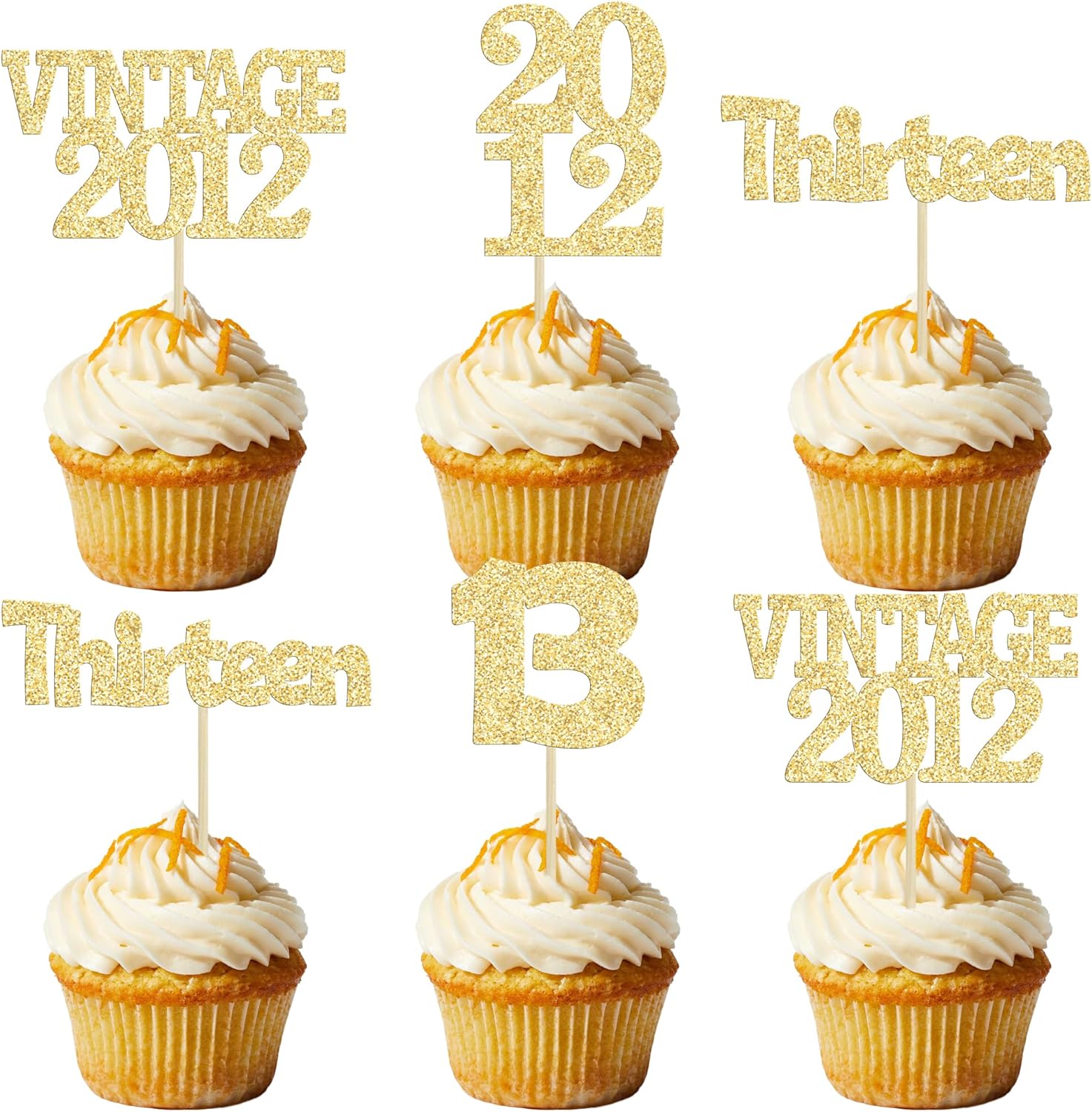 Gyufise 24Pcs Official Teenager 13 Cupcake Toppers Glitter Thirteen Vintage 2012 13th Birthday Cupcake Picks Hello 13 Years Birthday Cake Decor for Happy 13th Anniversary Party Supplies Gold