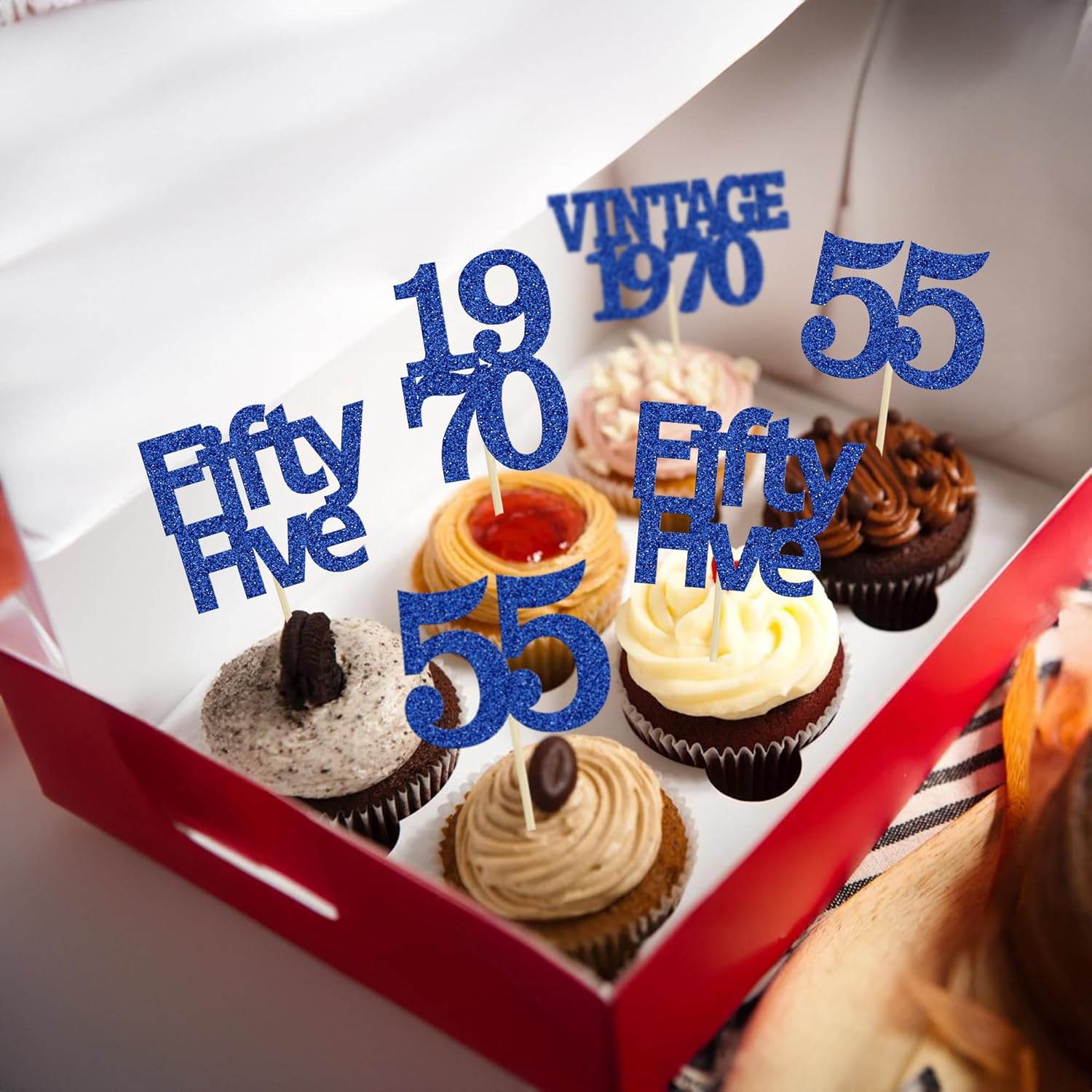 - Package included: 24Pcs 55th Birthday Cupcake Toppers. Comes with assembled, so you can insert into your cake directly, which make your cake more interesting.