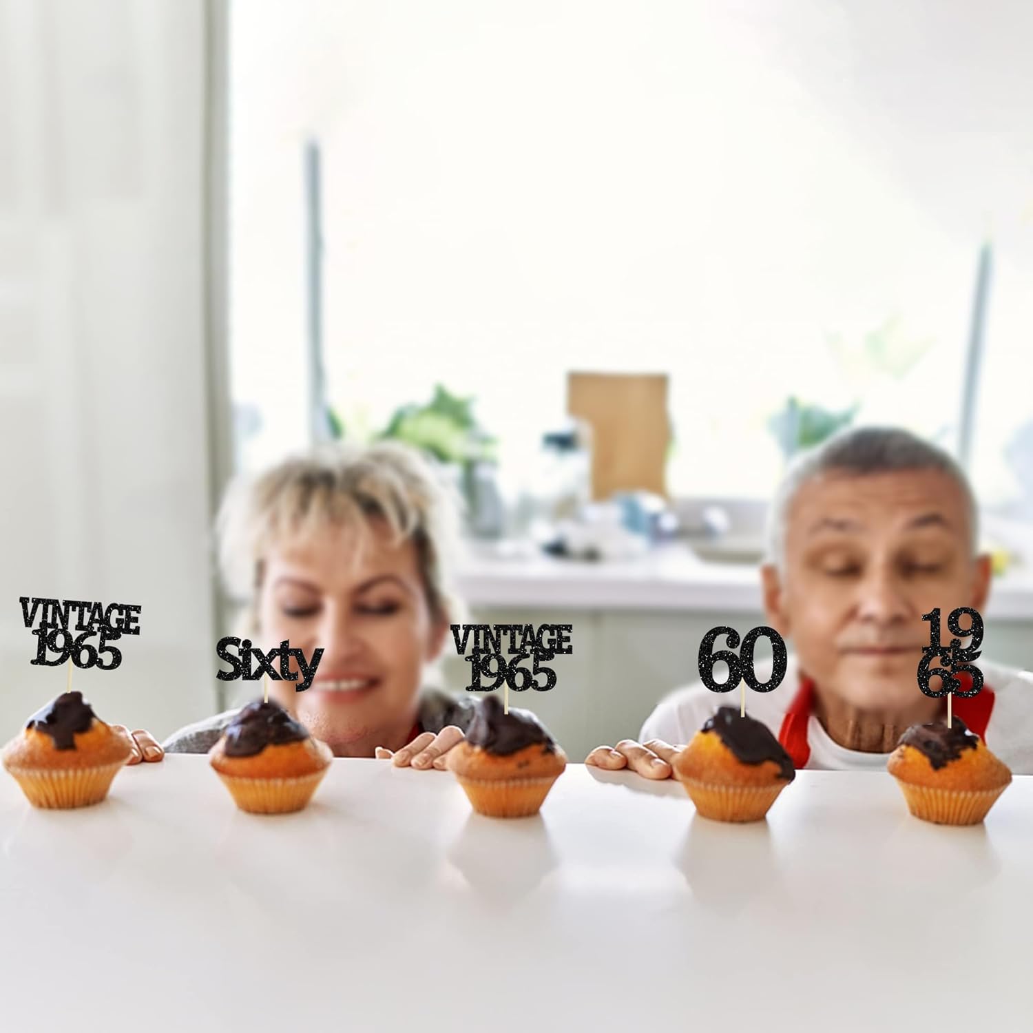 - Package included: 24Pcs 60th Birthday Cupcake Toppers. Comes with assembled, so you can insert into your cake directly, which make your cake more interesting.