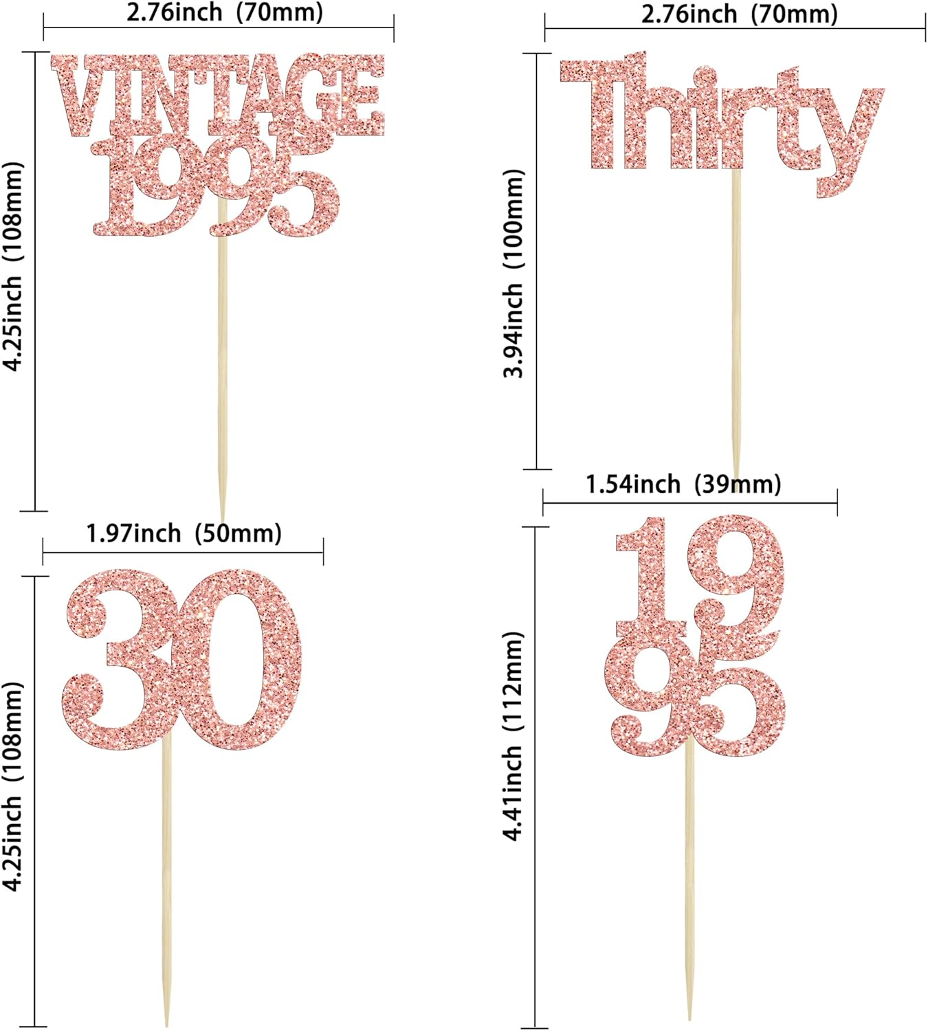 Gyufise 24Pcs Happy 30th Birthday Cupcake Toppers Glitter Thirty 30 Fabulous Vintage 1995 Cupcake Picks for 30th Birthday Wedding Anniversary Party Cake Decorations Supplies Rose Gold