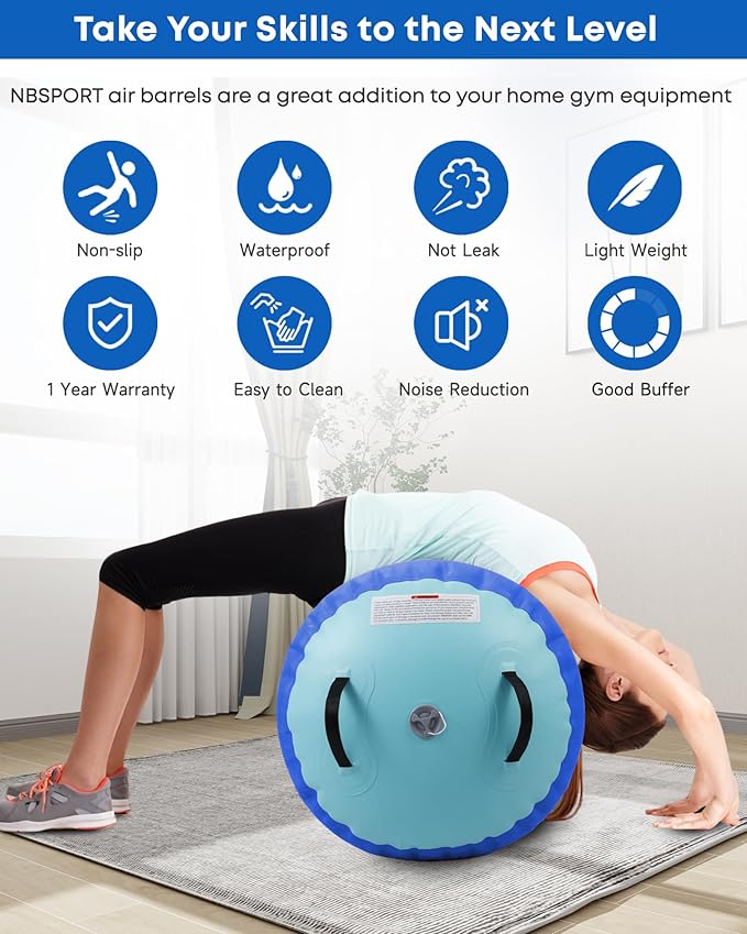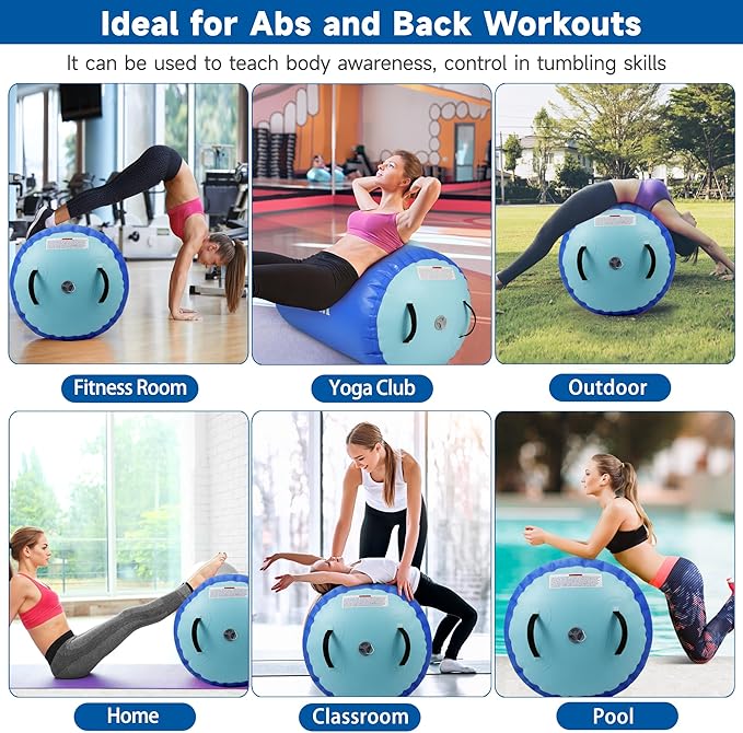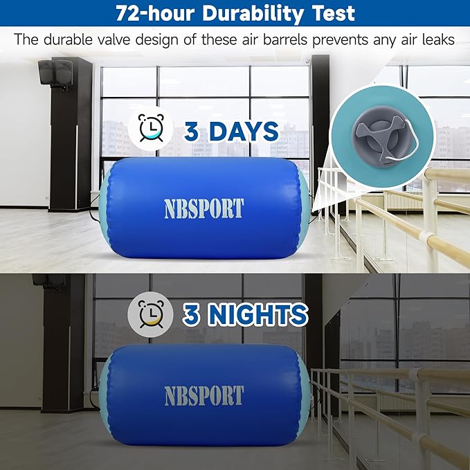 Air Barrel - Air Roller Gymnastics Barrel for Back Handspring Trainer, Air Track Tumble Mat with Pump for Gym Training/Yoga Balance Exercise/Cheerleading/Home and Outdoor Use