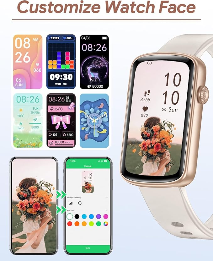 - [100+ Watch Dials & Customized Watch Faces] - You can choose from 100+ different styles watch dials in the related app, or upload your favourite photo to customize your unique watch face to match your mood and daily outfit.