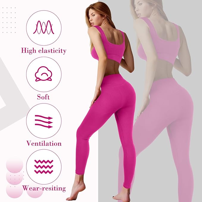 - Stretchy Material: yoga workout set is made from lightweight ribbed fabric, breathable and comfortable; The material designed to wick sweat away from your body, ensuring you stay dry and comfortable throughout your yoga session or Pilates class