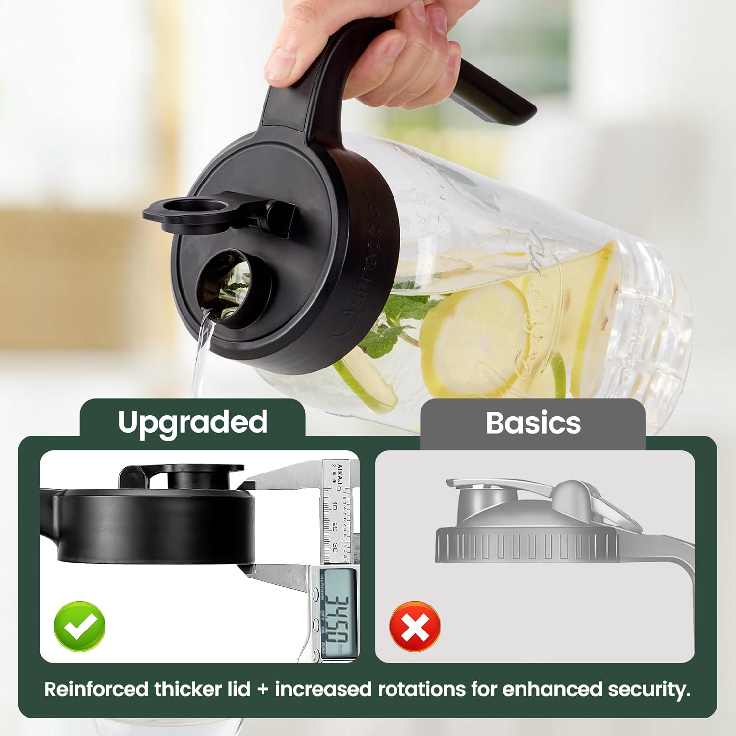 - Airtight and Leakproof Storage: Our Mason Jar Pitcher features an airtight and leakproof silicone seal, ensuring a seamless and mess-free storage experience. Keep your contents fresh and prevent leaks and drips, whether you store it in the fridge, on the counter, or in the pantry.