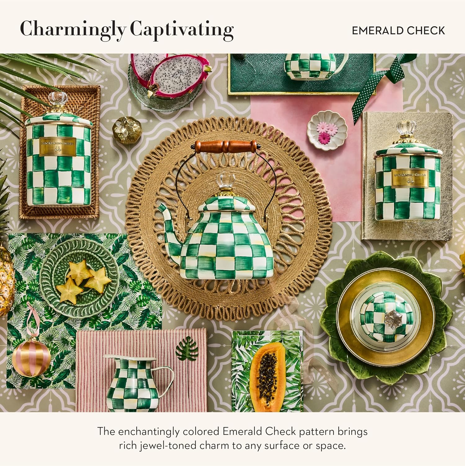 MACKENZIE-CHILDS Enamel Tea Kettle, Stylish Tea Kettle for Stovetop, Green-and-White Emerald Check, 2 Quarts