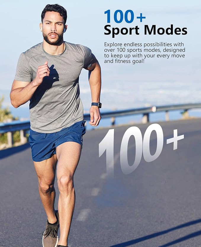 - 100+ Sports Modes And IP68 Waterproof:The fitness tracker supports over 100 sports modes, including running, cycling, yoga, etc., suitable for fitness enthusiasts and beginners. With precise data tracking and powerful features, we help you make the most of every workout and unleash your full potential. Smart watches meet daily waterproof requirements, such as sweat resistance, rain resistance, and splash resistance (note: not recommended for use in hot water or seawater)