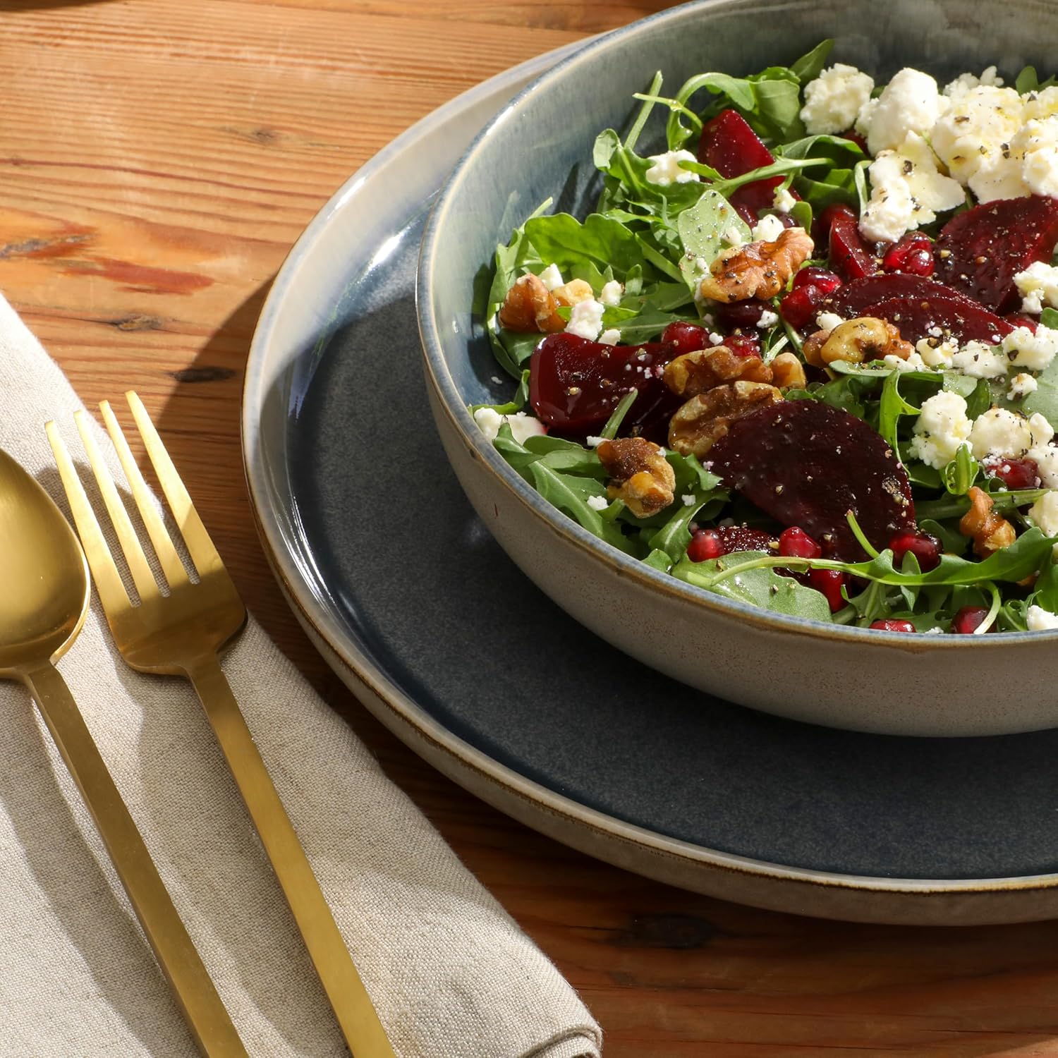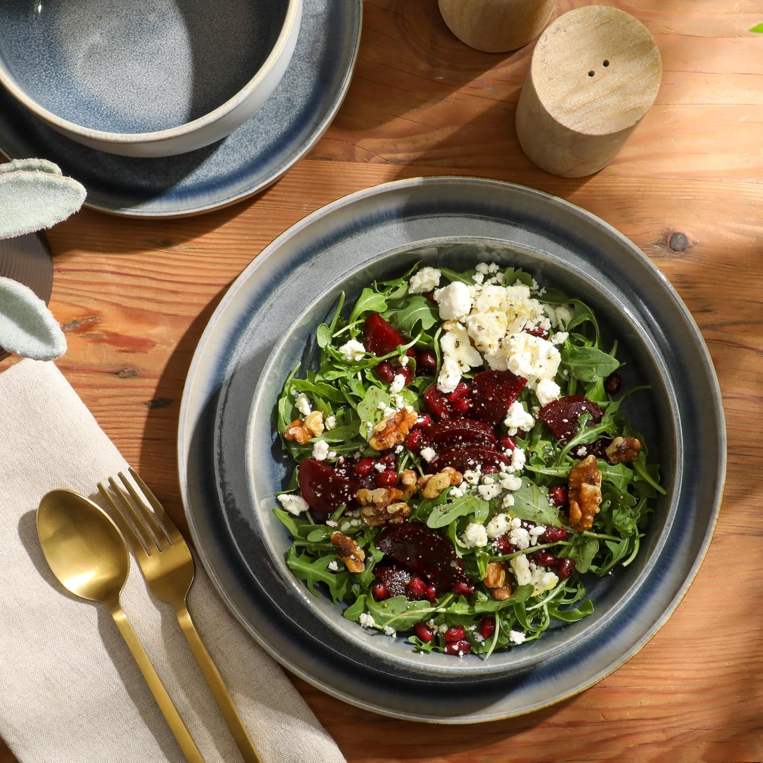 - WEAR-RESISTANT STONEWARE: Sturdy stoneware plates and bowls crafted to serve meals every day for any style, occasion, and budget. Fired at high temperatures to create a non-porous surface, this dinnerware set ensures strength and durability for long-lasting use.