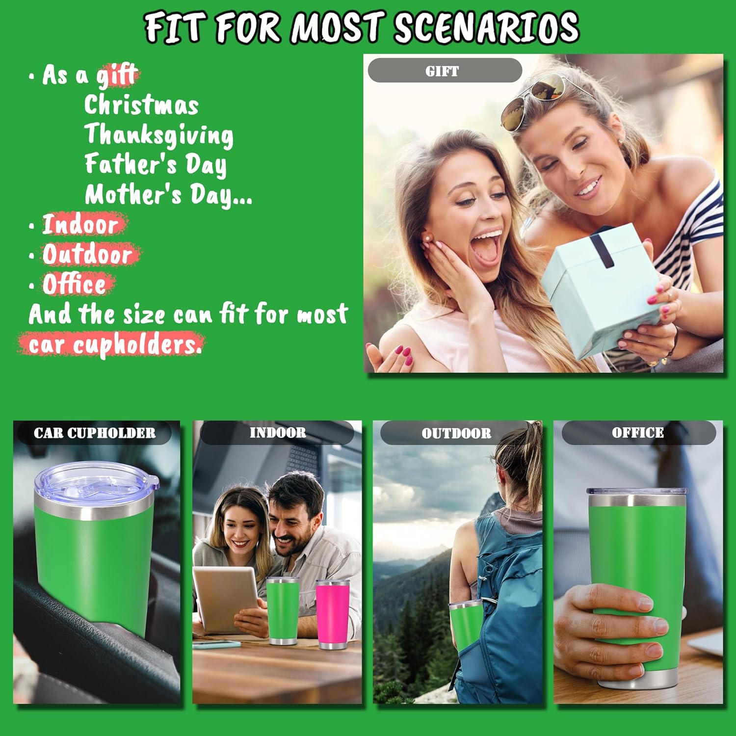 - SIZE & FITS CAR CUPHOLDER - The capacity of the tumbler is 20 oz and the smooth design of the tumbler body makes it suitable for most car cupholders. In addition, the tumbler can also be easily held