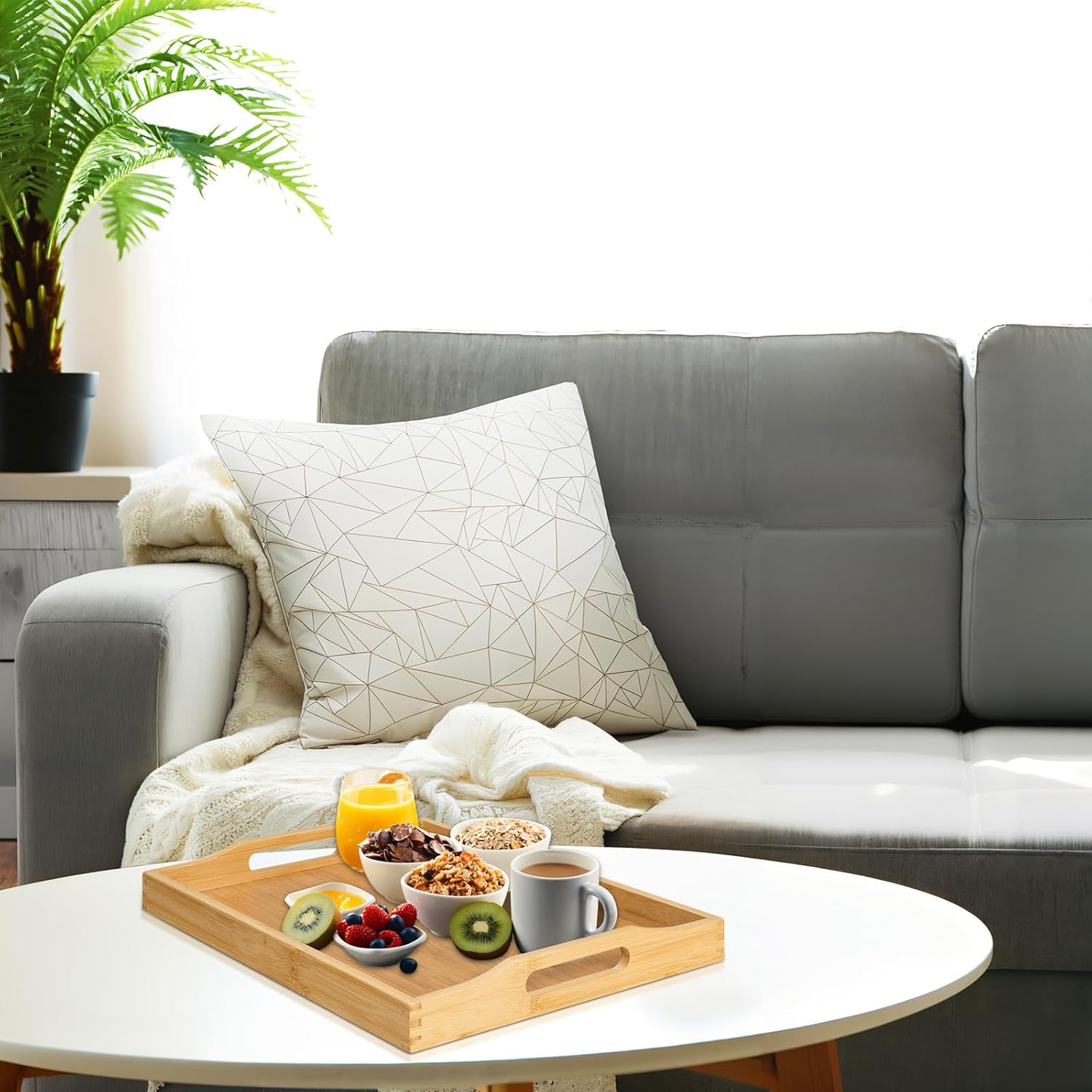 - Multipurpose Appetizer Serving Tray : Large serving trays serve food and drinks, breakfast in bed, bed tray store and organize all of your daily essentials, whether you're looking for decorative trays for coffee table, ottoman, vanity counter, our decorative tray makes a wonderful gift for any occasion