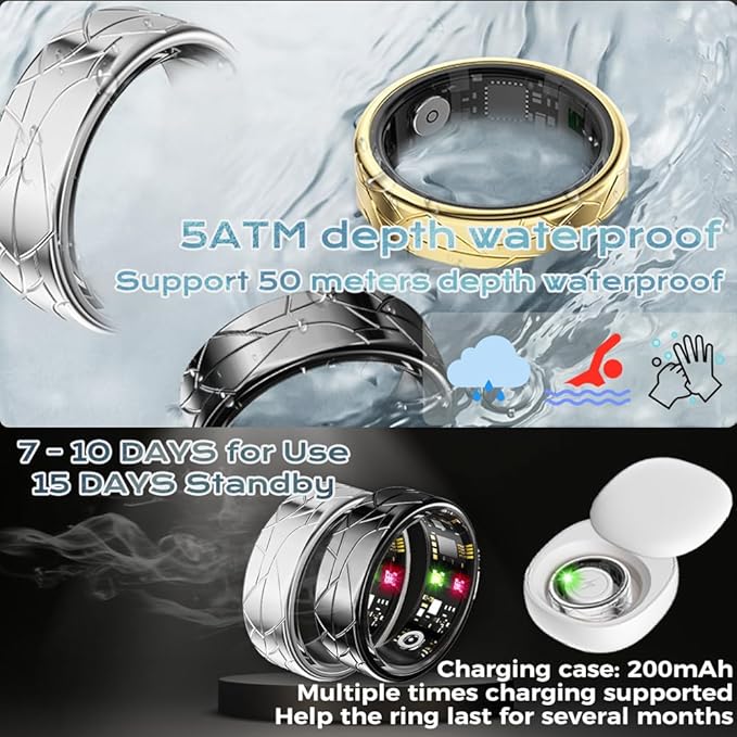 - Health Dashboard: Jawploy smart ring tracks heart rate & key metrics via app. Syncs steps/sleep/health data on app homepage. High-precision sensors ensure reliable readings for informed health choices(Charging case, cable, Usb - c cable in package)