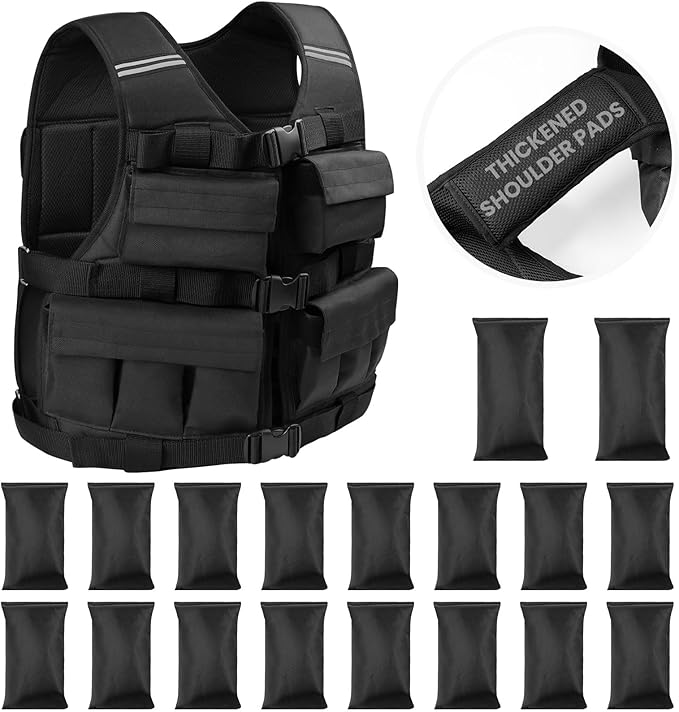 Weighted Vest for Men Woman 18lbs | 30lbs | 40lbs - With Shoulder Pads, Adjustable Weight Vest For Walking, Rucking, Cross Training, Running, Muscle Building - Breathable, Comfortable, Washable