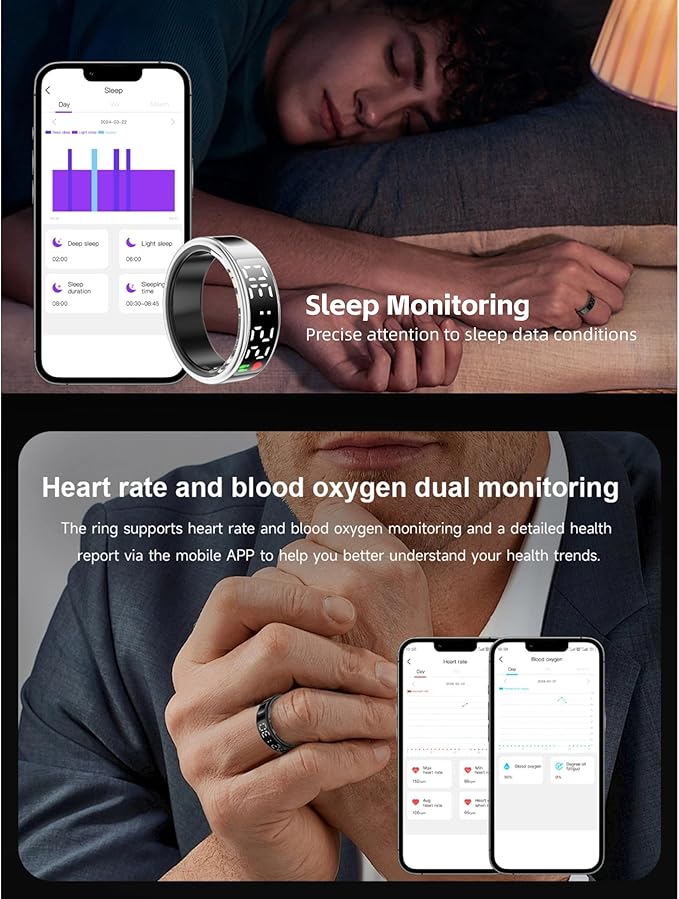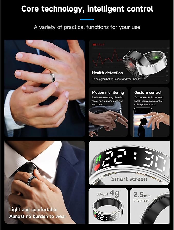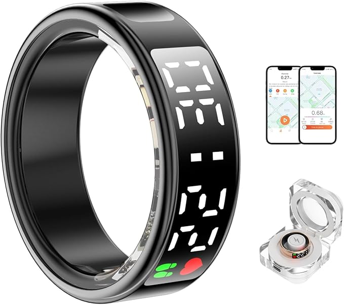 Smart Ring, Health Tracker Ring with Multifunction Display, Fitness Tracking Heart Rate Sleep Tracker Pedometer Ring, App Support, IP68 Water Proof, with Charging Case (11)