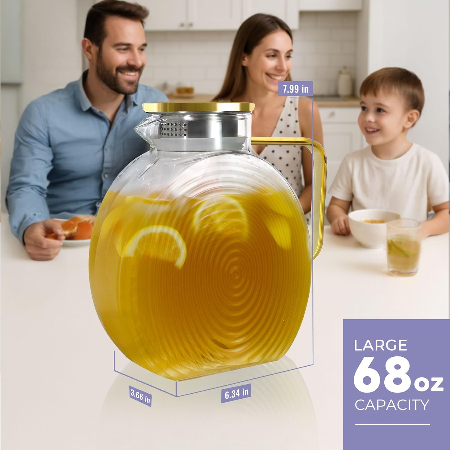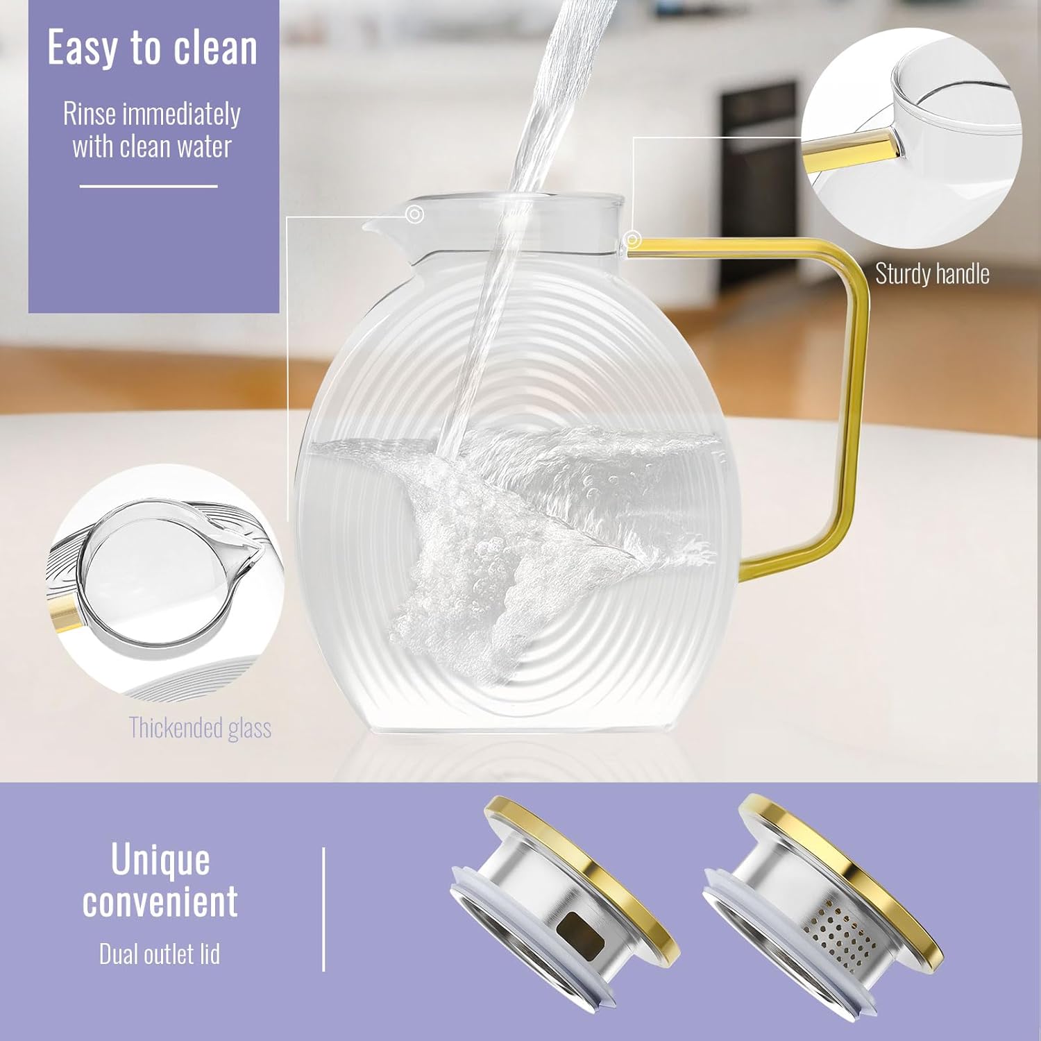 - Important Note: Please remember to peel off the two layers of protective film from the golden lid before using your glass pitchers to ensure a pristine and enjoyable experience.