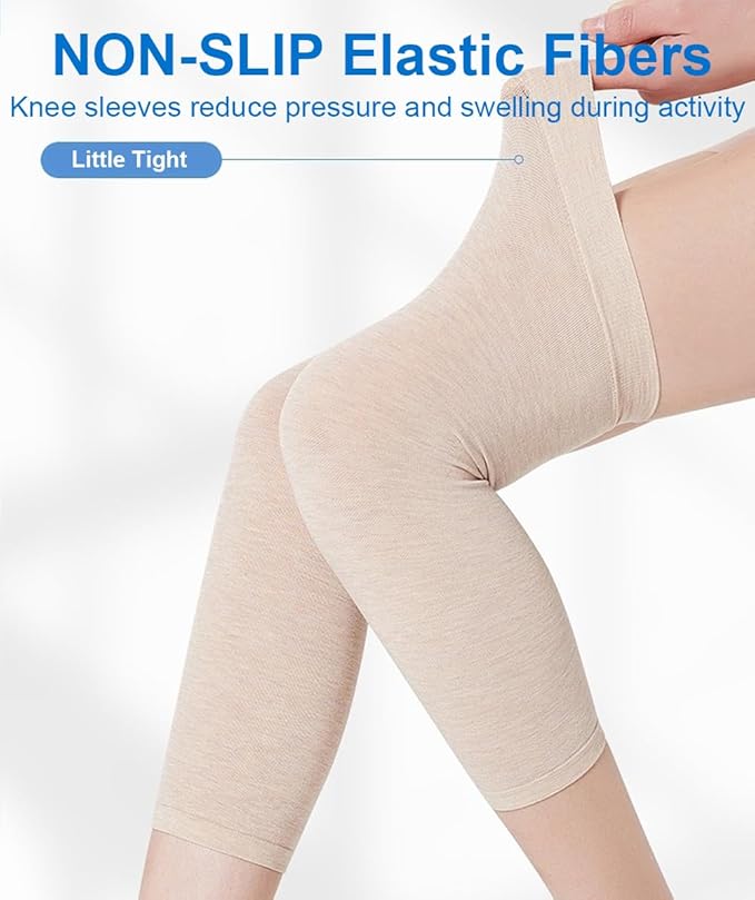 - Breathable Material - Made of soft nylon, viscose and spandex. Offer great breathability, softness, and flexibility, ensuring a comfortable fit that nicely guards your knees. Our leg sleeve for under knee brace fits smoothly against your skin, you can wear it all day without getting bored.