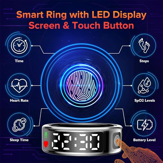 Smart Ring for Women Men with LED Display Screen & Touch Button, IP68 Waterproof Health Ring, Bluetooth Connection Health Tracker Ring Tracks Sport Activities/Heart Rate/Blood Oxygen/Sleep/Steps