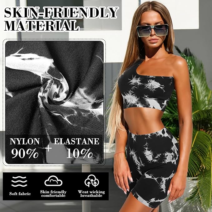 • Pilates Outfit Set: women 4 piece workout sets include 1pcs scoop neck sports bra, 1pcs one shoulder sport top, 1pcs ribbed shorts and 1pcs women leggings, stylish and practical garments designed to bring comfort and functionality to your workouts