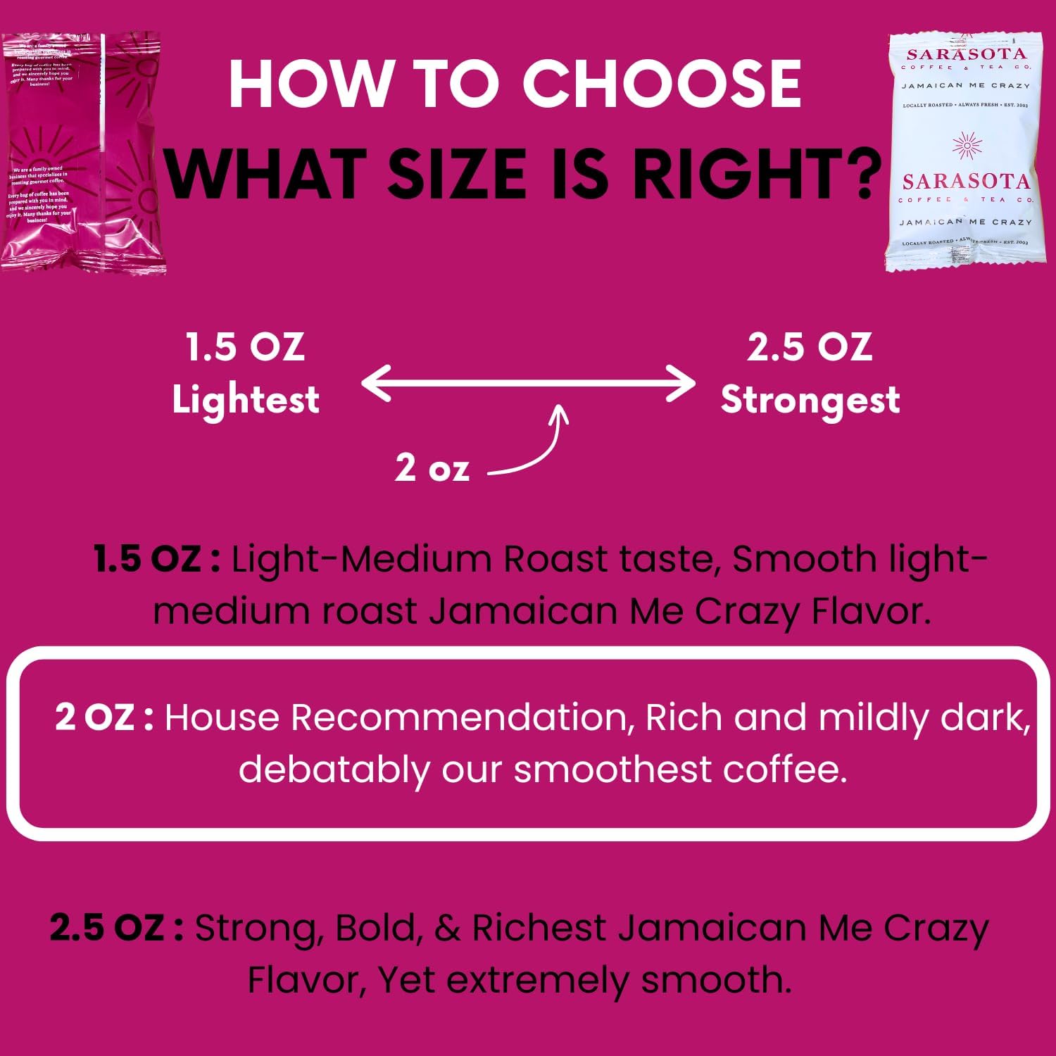 Sarasota Coffee Ground Packets | Gourmet Flavored Medium Roast Grounds Packs | Jamaican Me Crazy | Low Acid Mold Free Individual Single Pot Pouches for 12 Cup Coffee Maker | 2 Ounce Bags, 12 Count