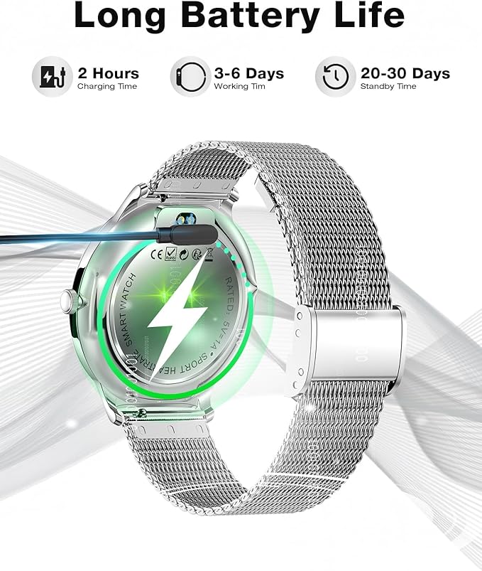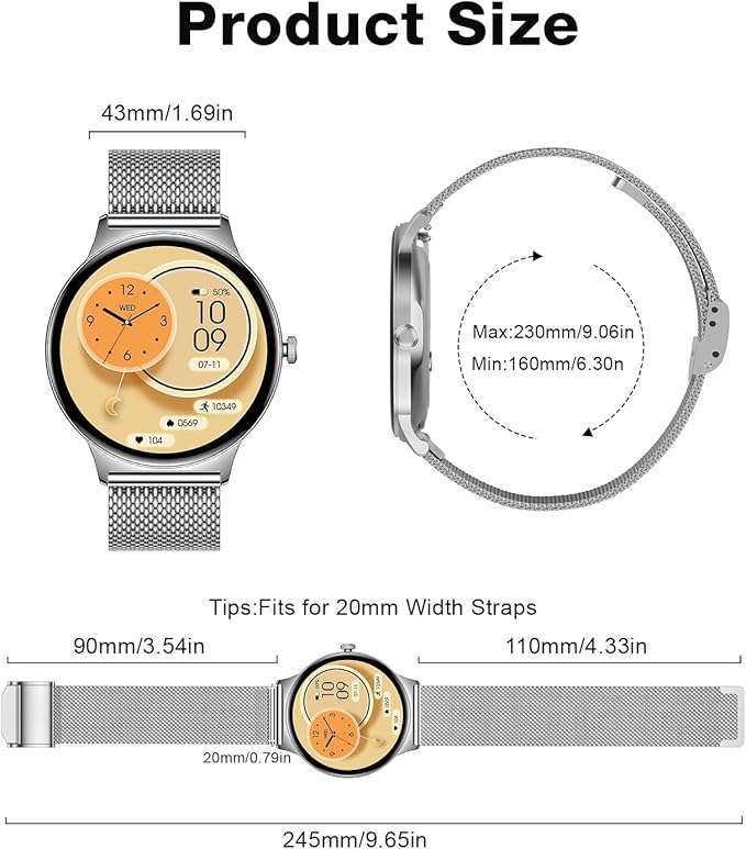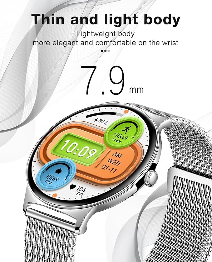 - 【Lightweight & Stylish Design】At just 7.9mm thick, this smartwatch is lightweight, comfortable, and beautifully designed. The breathable, premium strap enhances both comfort and style, making it perfect for everyday wear. Whether as a gift or for yourself, this smartwatch isn't just a functional device—it's a stylish accessory that complements any outfit, turning heads wherever you go. Wear it for both practicality and fashion!