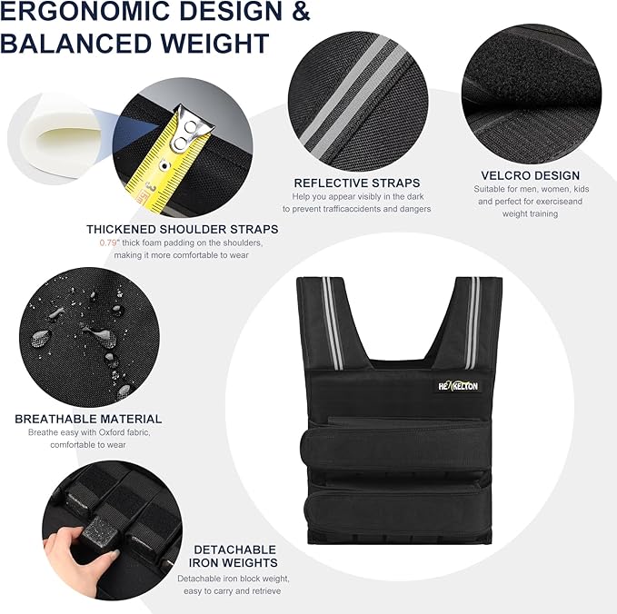 - HELPFUL & SAFE - If you're weighted workout vesting outdoors or engaging in low-light exercises, even while out and about, you'll stay safe and easy to see thanks to the high-visibility reflective strips on the shoulders and back of the adjustable weighted vest
