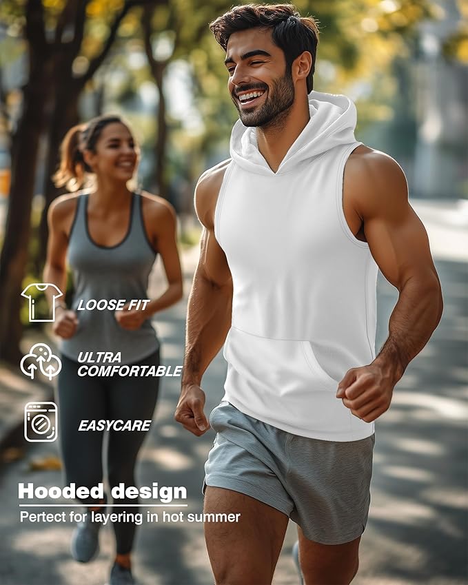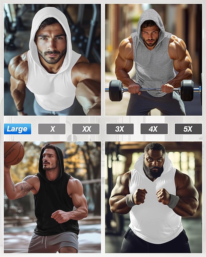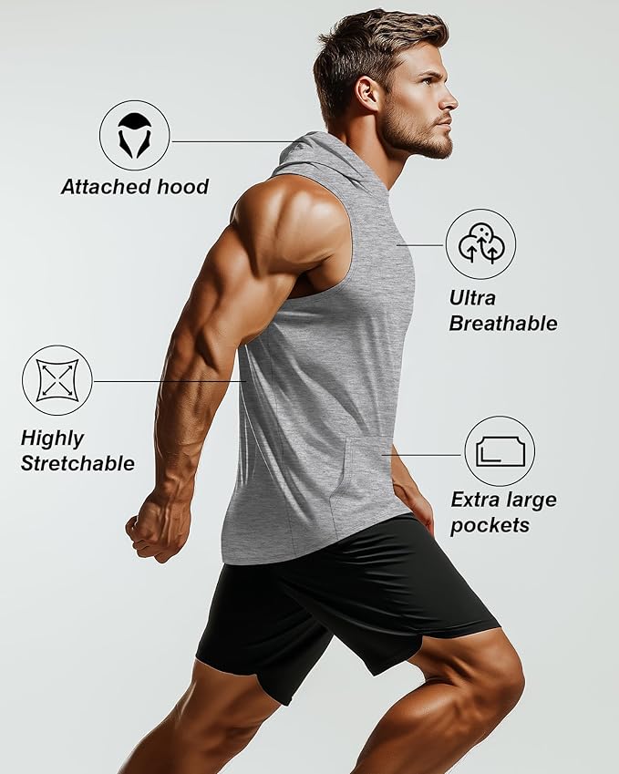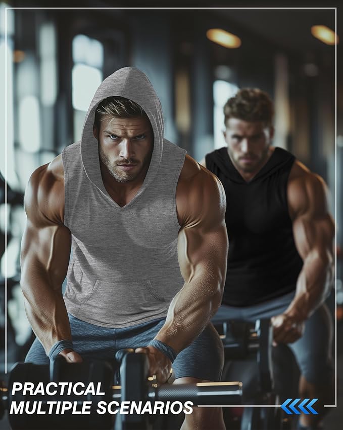 - Sleeveless and Hooded Design: the men's hooded tank tops feature sleeveless, hooded and kangaroo pocket design, accentuating your physique and muscles of arms while having a practical pocket in front can store your belongs