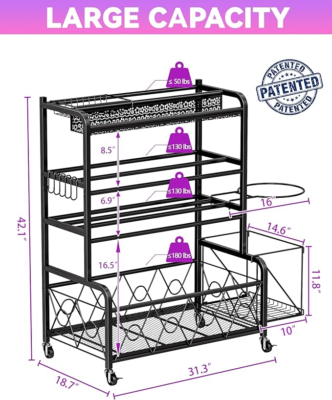 - Efficient Home Gym Organizer: This gym storage rack has 4 layers, storage baskets and hooks, which can effectively store yoga mats, dumbbells, kettlebells, resistance bands, yoga ball and foam rollers in one rack. Keep your workout space organized.