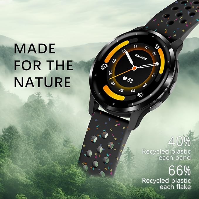 22mm Colorful Sport Silicone Band Compatible With Garmin Vivoactive 4/Venu 3/Venu 2, Recycled Plastic Soft Sport Strap Replacement for Forerunner 265/745/255/255 Music Men Women