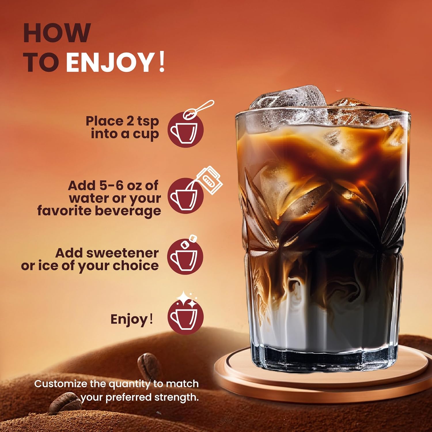 - USAGE INSTRUCTIONS: Place 2 tsp (8g) of Mushroom Mocha Coffee Blend into a cup. Add 6 oz of hot water or your favorite beverage. Customize with sweetener or ice of your choice. Stir well and enjoy