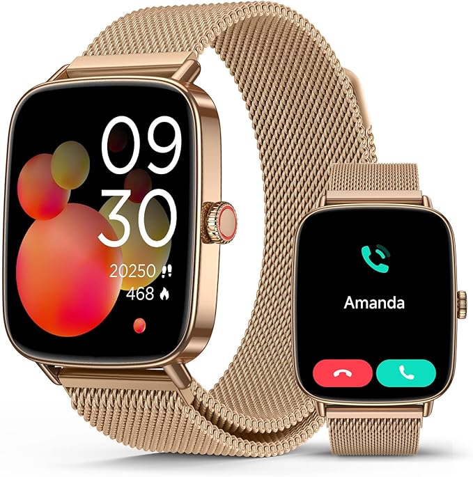 2025 Smart Watches for Women, 1.85" AI Voice Smartwatch, 24/7 Heart Rate Monitor, Stress/SpO2/Sleep Tracker, IP68 Waterproof, Weather, 100+ Sports Fitness Tracker for Android iOS Gold Metal
