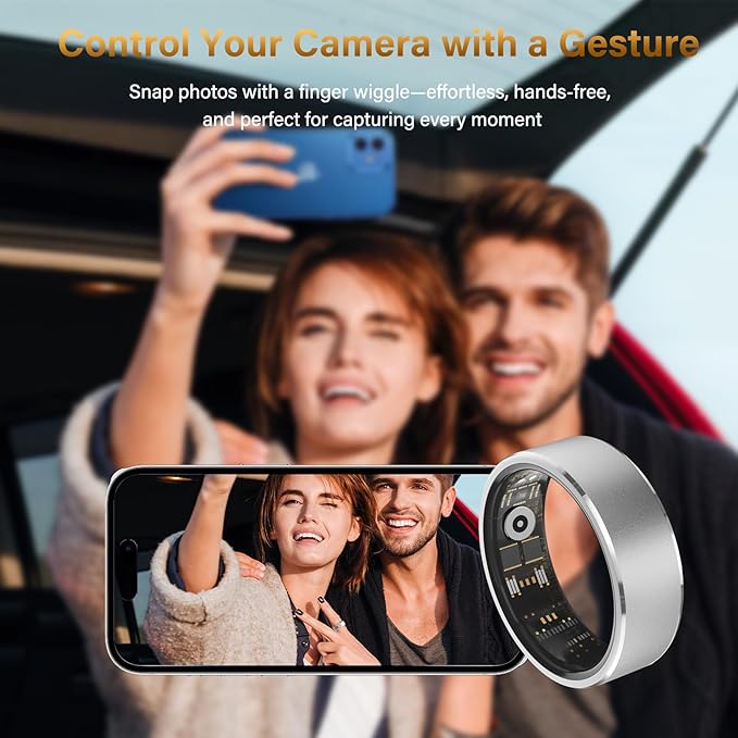 - 【Hands-Free Photo Control】The Fitness Rings for Men & Women Activate your phone’s camera shutter with a simple finger gesture—no extra gear needed. Designed as a practical sleep tracker ring, it lets you capture moments effortlessly, perfect for group photos or creative shots.