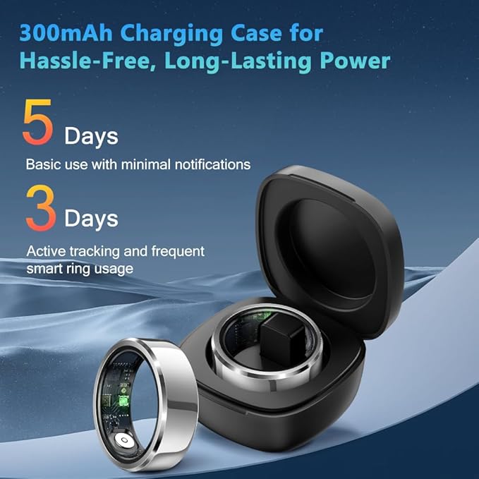 - 24/7 Comprehensive Health Monitoring with Our Health Ring: Monitor your health metrics with the built-in sensors, including heart rate, blood oxygen, blood pressure, sleep patterns with deep sleep, light sleep & wake-up time, and stress in real-time with our all-in-one smart ring. It features a dedicated women’s health section for personalized insights, empowering you to stay on top of your well-being each day. This smart ring health tracker helps you live a healthier, more active life.