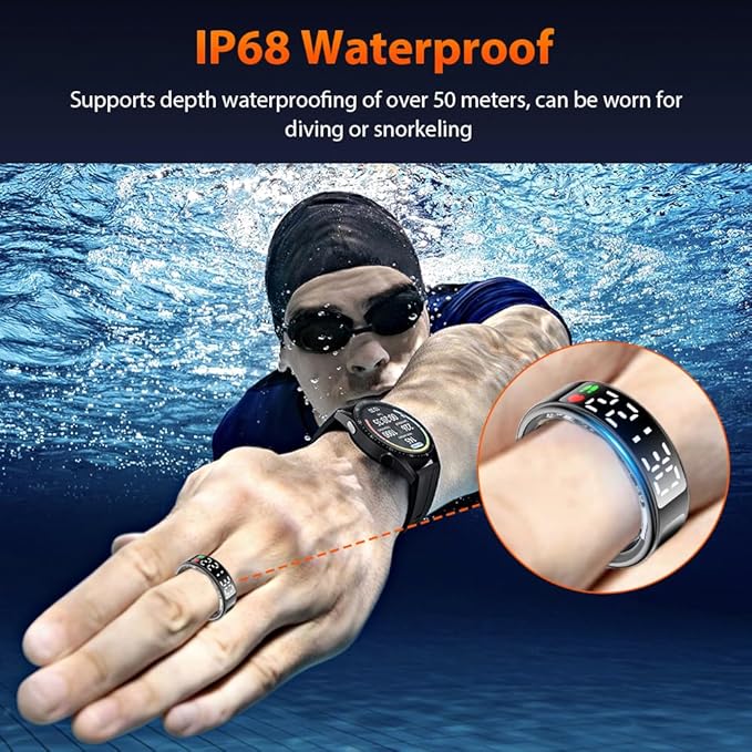 - Premium Material & IP68 Waterproof: Crafted from high-quality epoxy resin and stainless steel, this ultra-light 4g smart ring is durable and comfortable to wear. With advanced sealing technology and an IP68 waterproof rating, it withstands water immersion, making it ideal for daily activities like hand washing, workouts, and even diving or snorkeling. Built for durability, its robust construction ensures long-lasting performance.